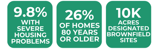 Housing for people of all ages and backgrounds is a top concern in the county, with 9.8% of our population experiencing severe housing problems. Given housing can also be a social determinant of health and access to it can often be the difference maker in someone’s mental, physical, or financial wellbeing, this makes the need particularly dire. Unfortunately, the fact that roughly 26% of all homes in the county are 80 years old or older and do not adequately fit modern needs for housing makes rectifying this an uphill battle. Organizations such as the Redevelopment Authority of Washington County and the Washington County Land Bank are assisting the best they can through renovations of properties that can be salvaged and repurposed for modern needs, as well as demolition of others to make way for new constructions.